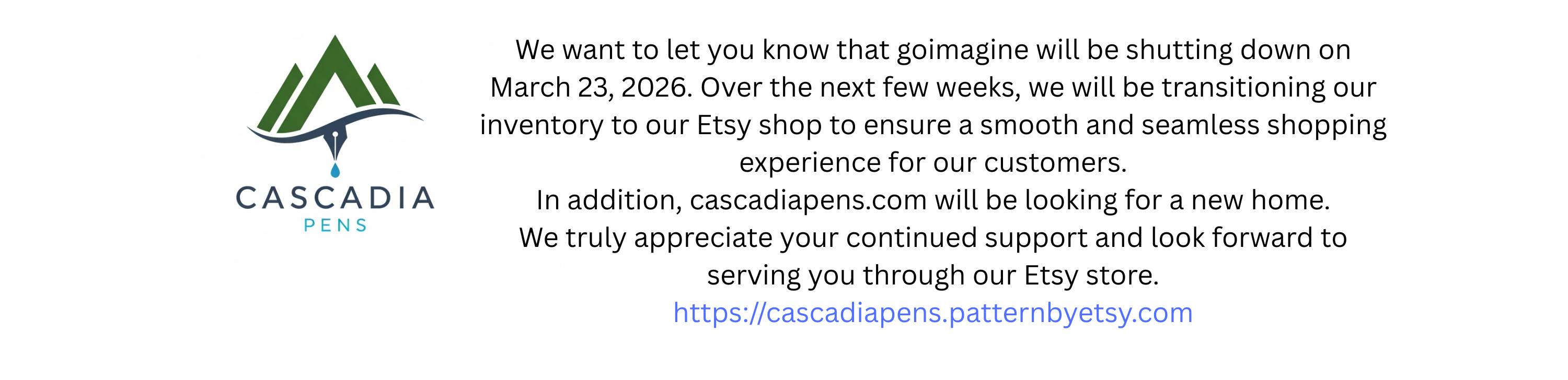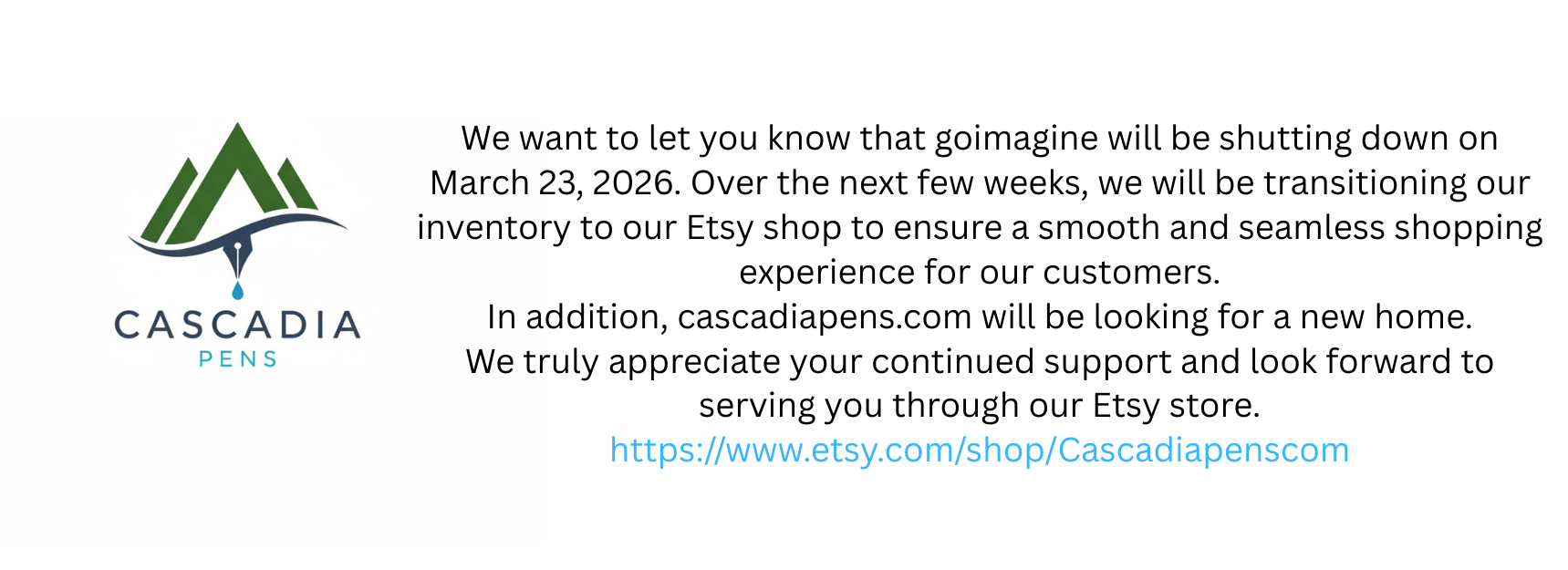 In addition, cascadiapens.com will be looking for a new home.