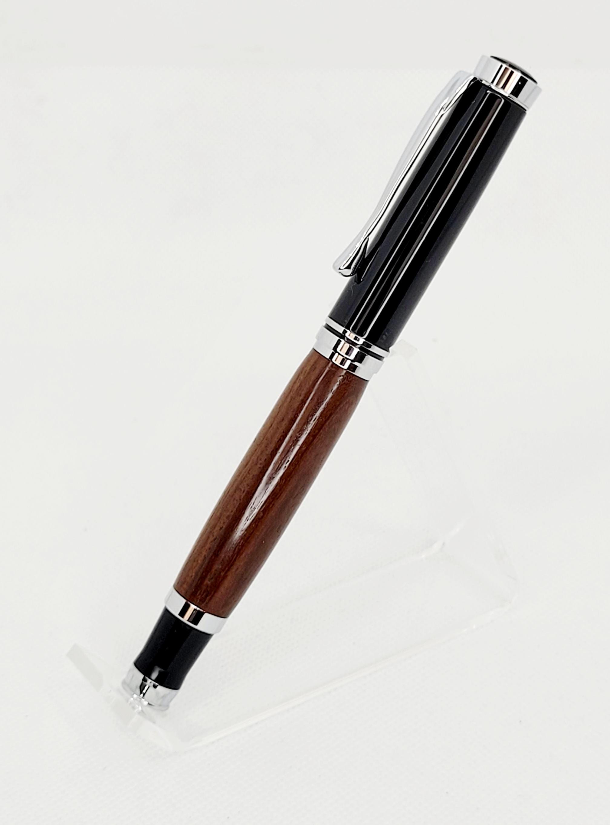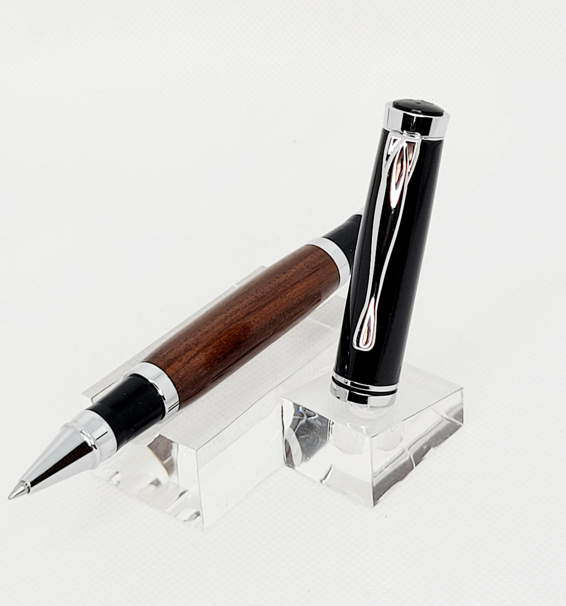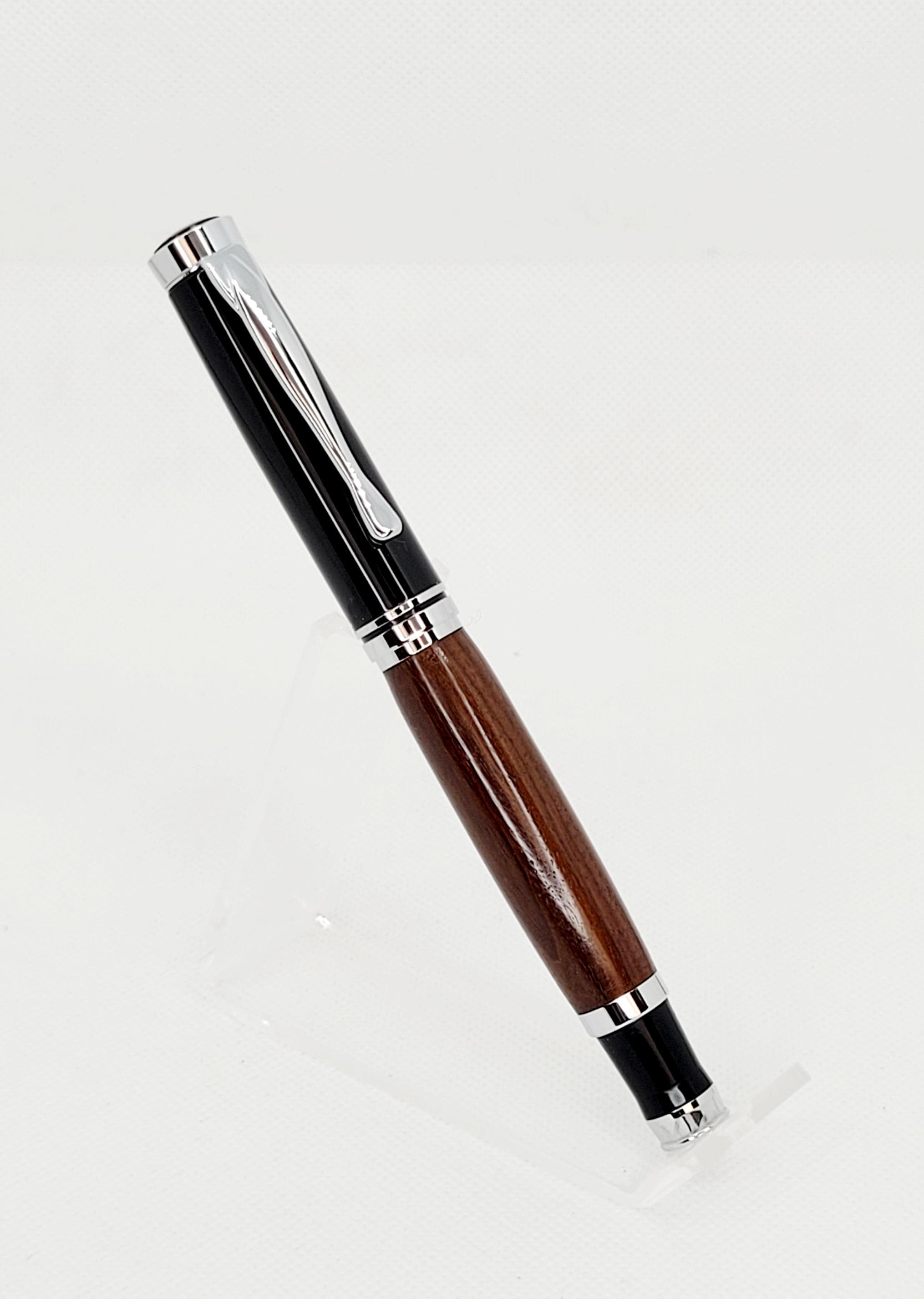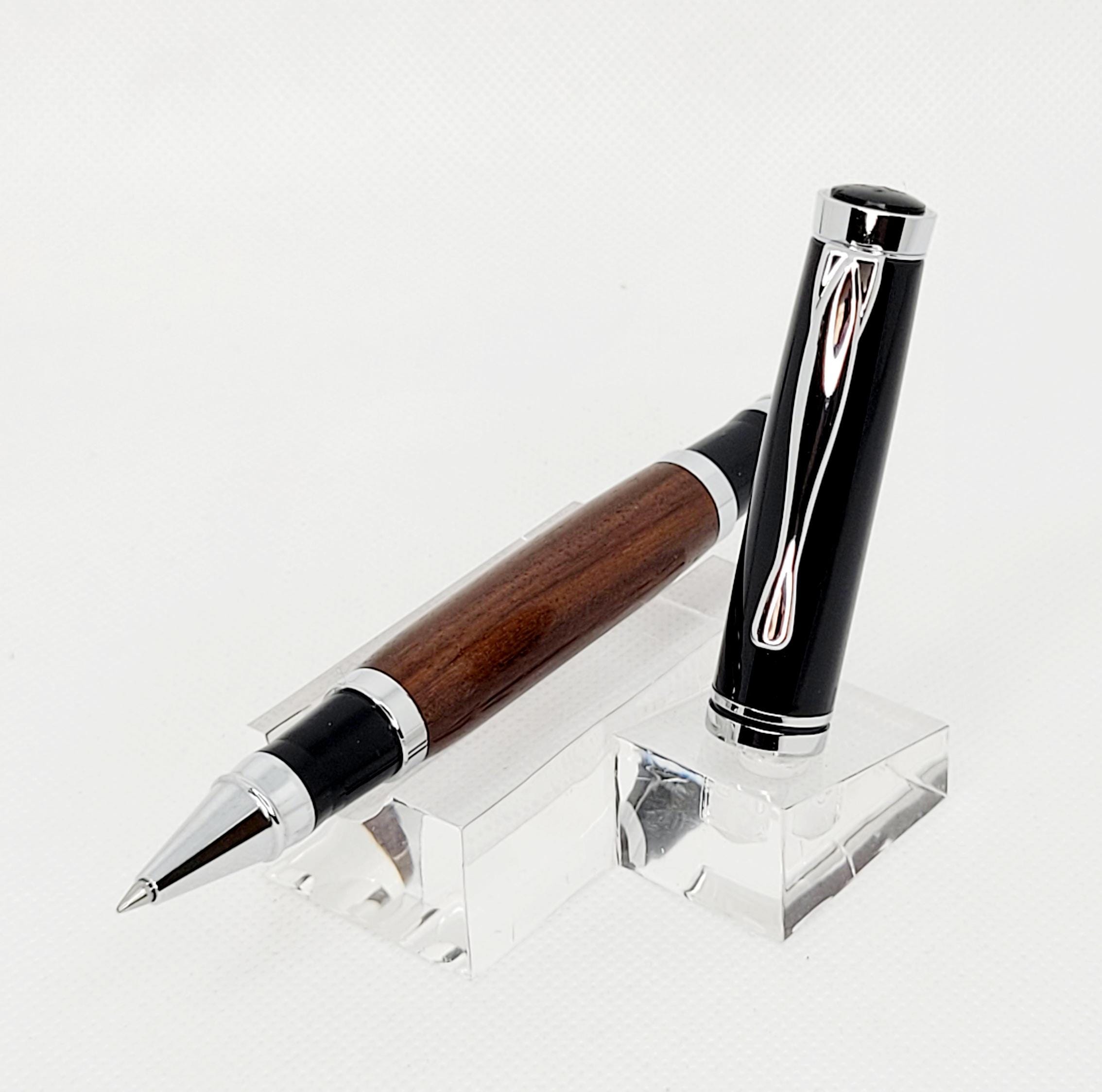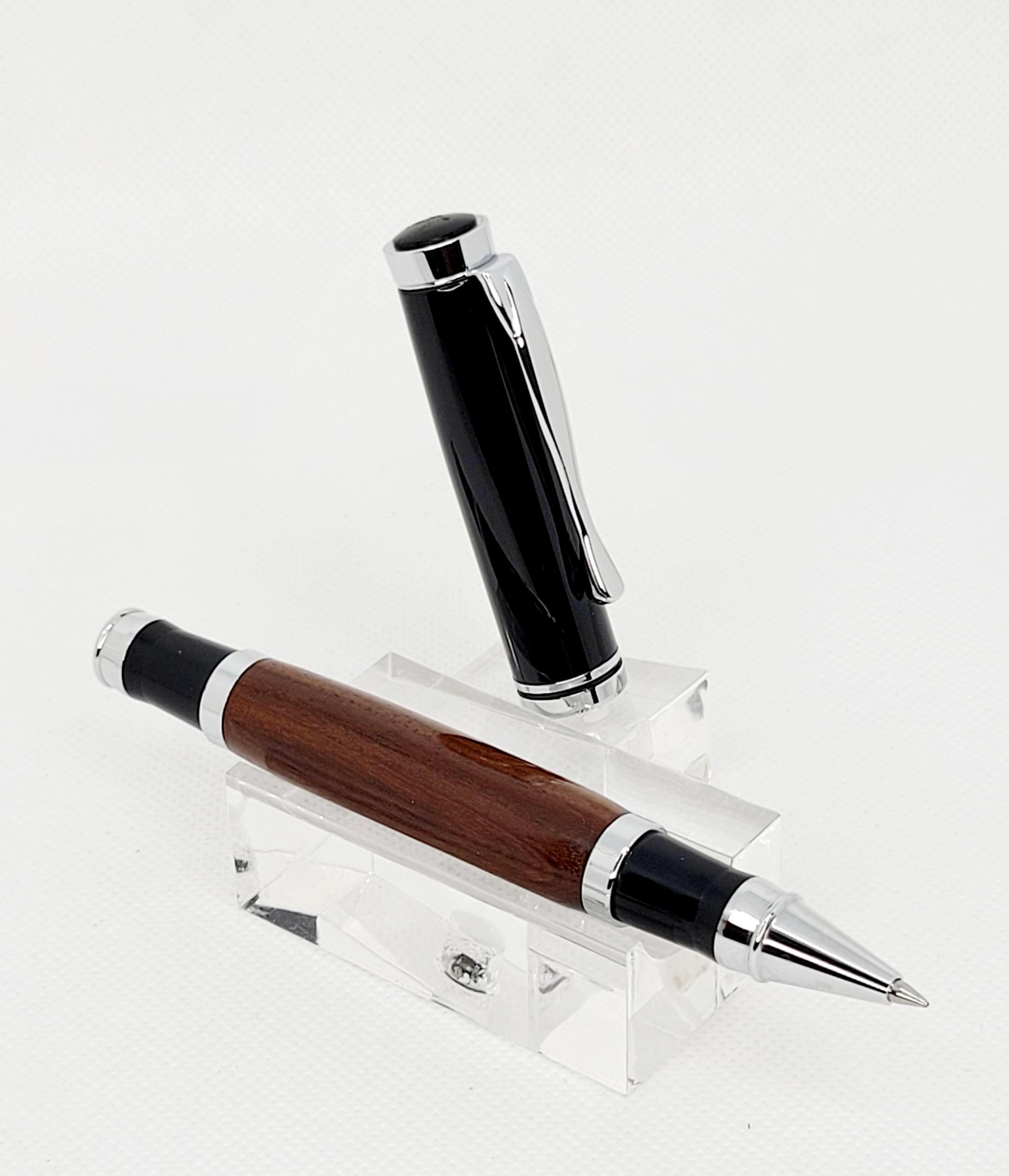 Elevate your writing experience with the Oxford Roller Ball Pen, a perfect blend of artistry and performance. Handcrafted from exquisite Bolivian Rosewood, its rich grain patterns flow gracefully around the pen, making every piece truly one-of-a-kind. Sleek Chrome and Black accents complete the design, creating a timeless look that’s both modern and refined.